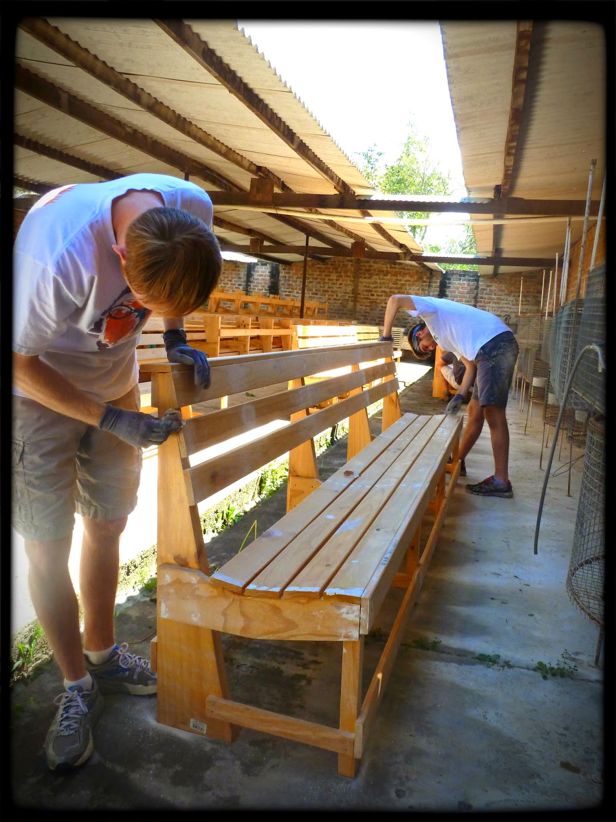 WORKING ON THE CHURCH BENCHES
