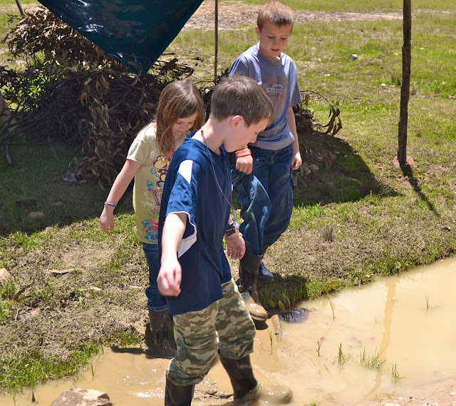 | Heath Kids Taking A Break To Play In The Rain Puddles |